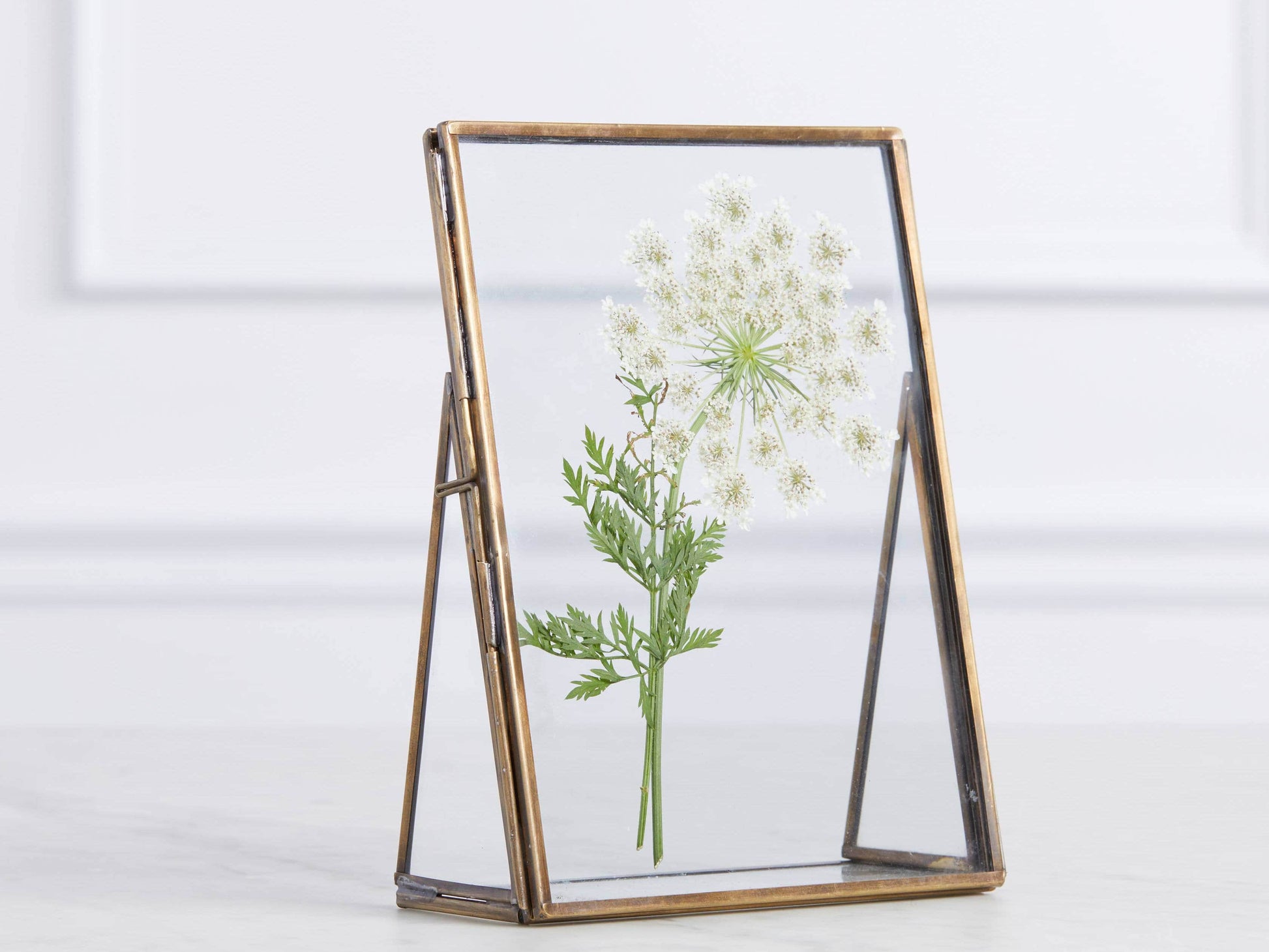 - Showcase treasured memories and highlight your décor with a personal touch. These simple brass and glass picture frames are thoughtfully crafted from brass with a slightly antique patina to accentuate photographs or small artwork enclosed within.